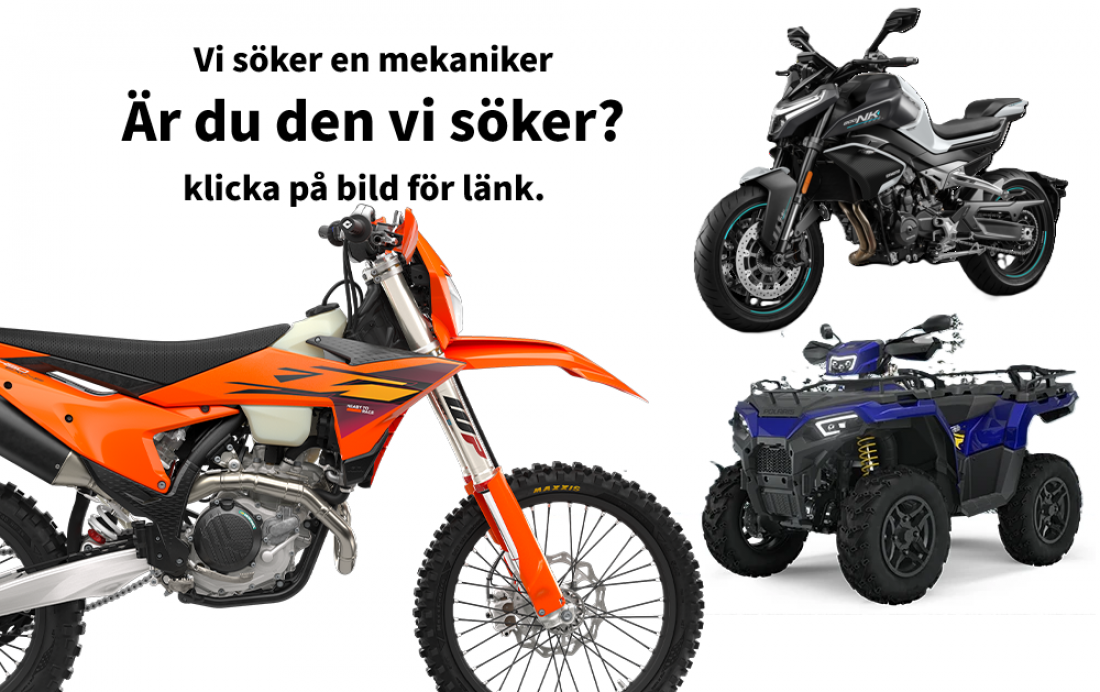 Vi har en av sveriges mest välutrustade verkstäder och jobbar mycket med motorrenovering, trimning, tuning i bromsbänk, stötdämpare, ombyggnad och customizering. Och självklart även vanlig service och reparation, skadereparationer, garantiärenden, felsökning och reparation av elektronik. Vår verkstad är Auktoriserad för Harley-Davidson, KTM, Polaris, Men självklart så servar vi och reparerar alla övriga kända fabrikat också Både Japanska & Europeiska, Då vi tillsammans har många års erfarenhet av dessa. Dynojet tuning center, Fox, Öhlins, Walker Evans stötdämpare, .